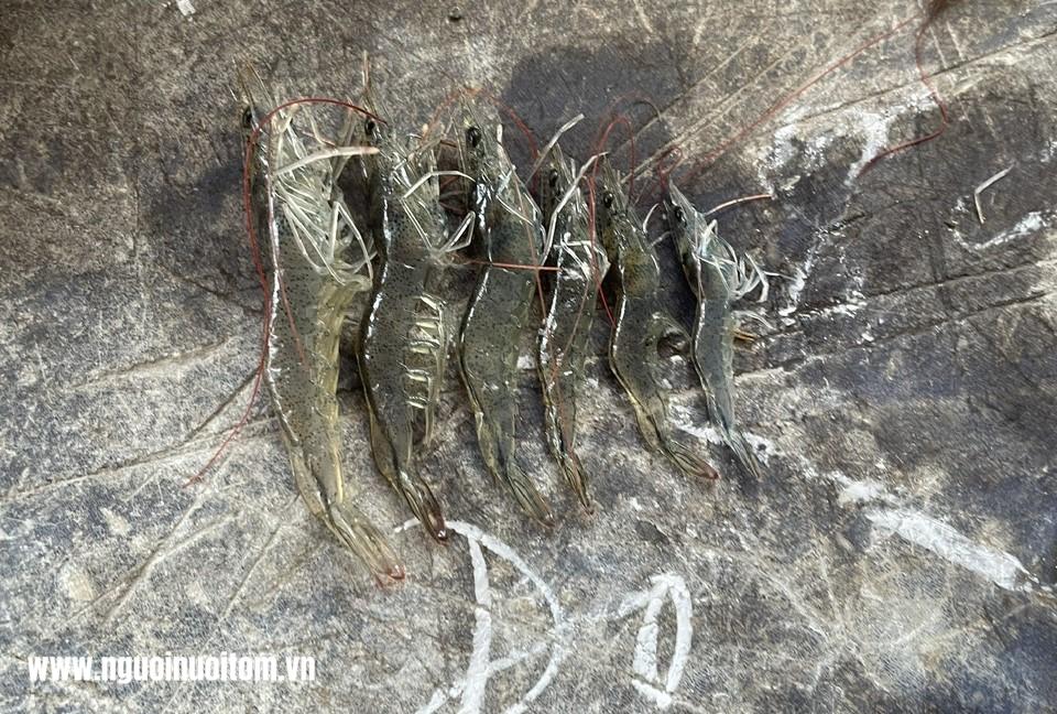 - Vỏ mỏng, cơ thịt trắng (tôm bị stress do EHP).