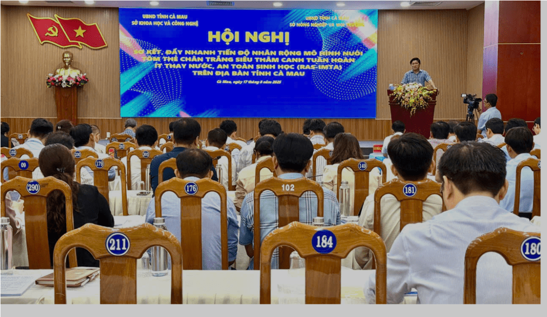 Đó là thông tin được đề cập tại “Hội nghị Sơ kết, đẩy nhanh tiến độ nhân rộng mô hình nuôi tôm thẻ chân trắng thâm canh tuần hoàn ít thay nước, an toàn sinh học (RAS-IMTA) trên địa bàn tỉnh Cà Mau”, do Sở Khoa học và Công nghệ phối hợp với Sở NN&MT tỉnh Cà Mau tổ chức ngày 17/8/2025.