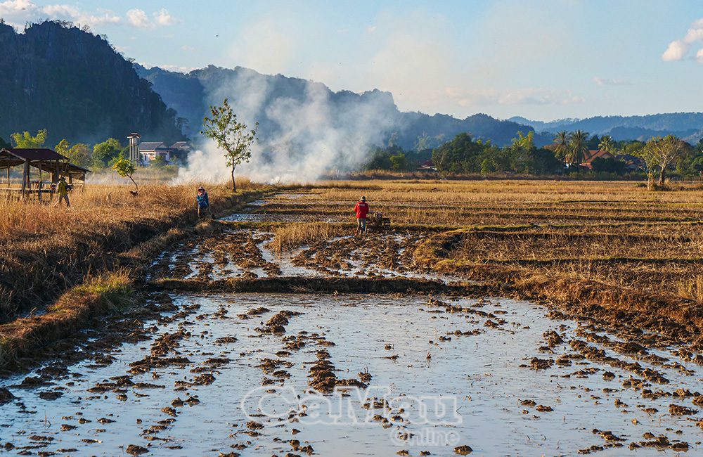 Nông dân huyện Nhôm Ma Lát chuẩn bị cải tạo đất canh tác lúa. Ảnh: Báo Cà Mau