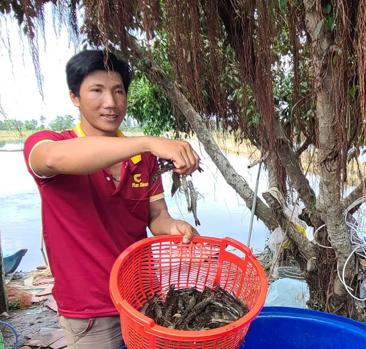 Sau gần 6 tháng triển khai, mô hình nuôi tôm càng xanh trong ao do ...