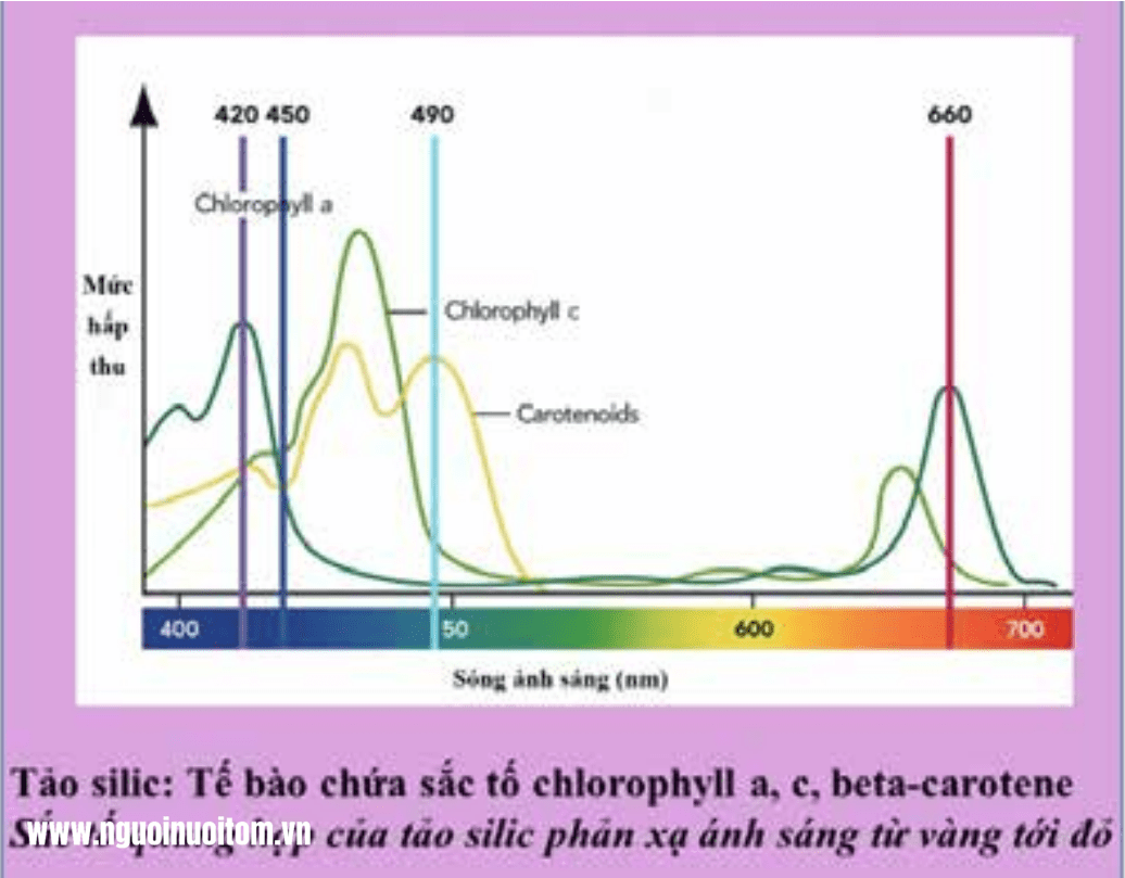 Cạnh tranh với tảo không mong muốn khác: Thực vật phù du hấp thụ ánh sáng tốt nhất trong phần màu đỏ và cam của quang phổ, và hấp thụ các màu khác ở mức độ thấp hơn. Màu của tảo Silic giúp hạn chế sự hấp thu vùng cam, đỏ, do đó hạn chế sự phát triển của tảo (gồm cả tảo không mong muốn) và ngăn chặn hiện tượng nở hoa, giúp giữ môi trường nước sạch – ổn định. Chính vì vậy, màu trà thường được sử dụng trong giai đoạn chuẩn bị thả tôm, sang tôm hoặc khi ao nuôi cần ổn định nhanh môi trường.