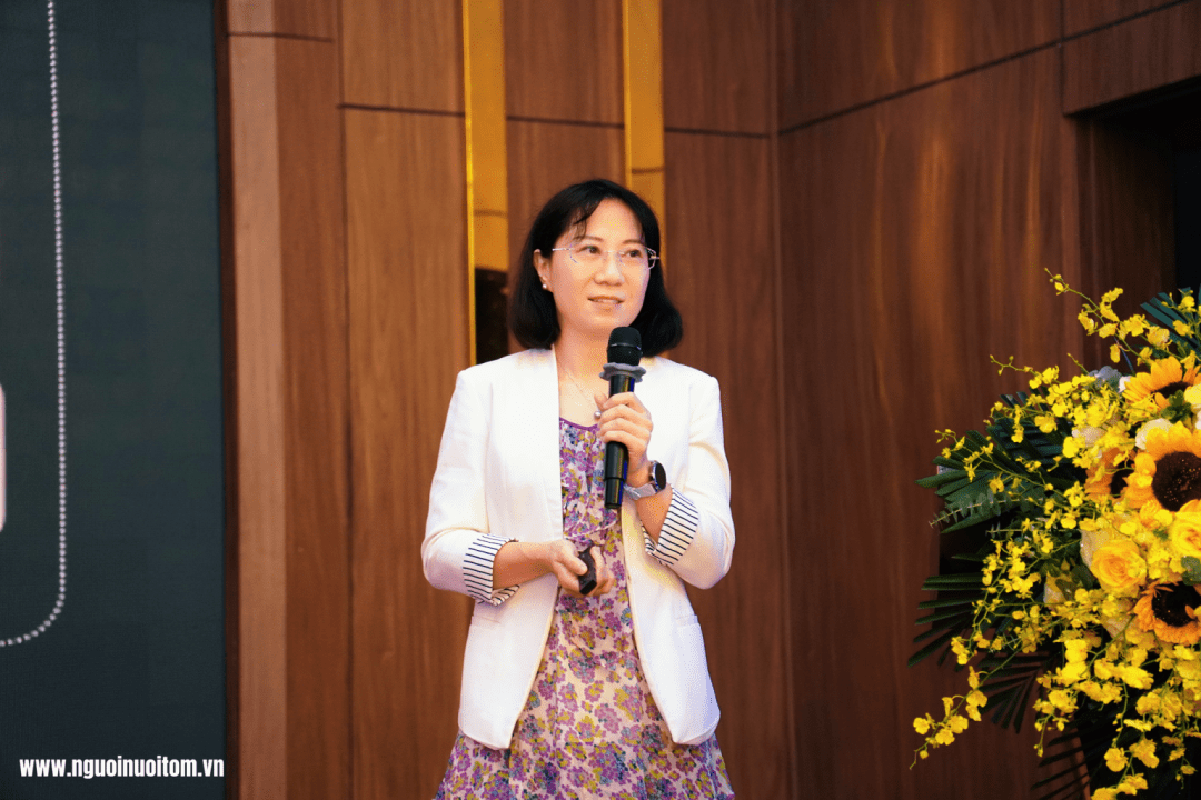 Bà Grace Yu, Phó Chủ tịch Công ty TNHH Khoa học công nghệ Tập đoàn NONGXIN Bắc Kinh trình bày về chủ đề “Trường hợp chuyển đổi và nâng cấp số thông minh của nông nghiệp Trung Quốc – Sự Khám Phá và Thực Tiễn của Công ty TNHH Khoa học công nghệ Tập đoàn NONGXIN Bắc Kinh”