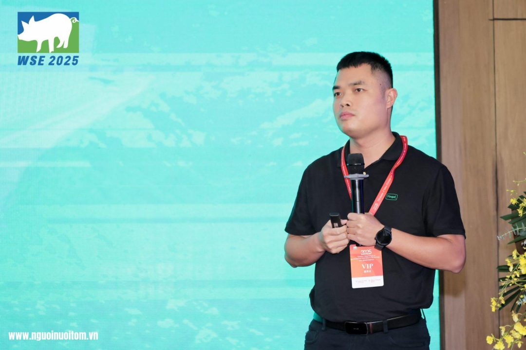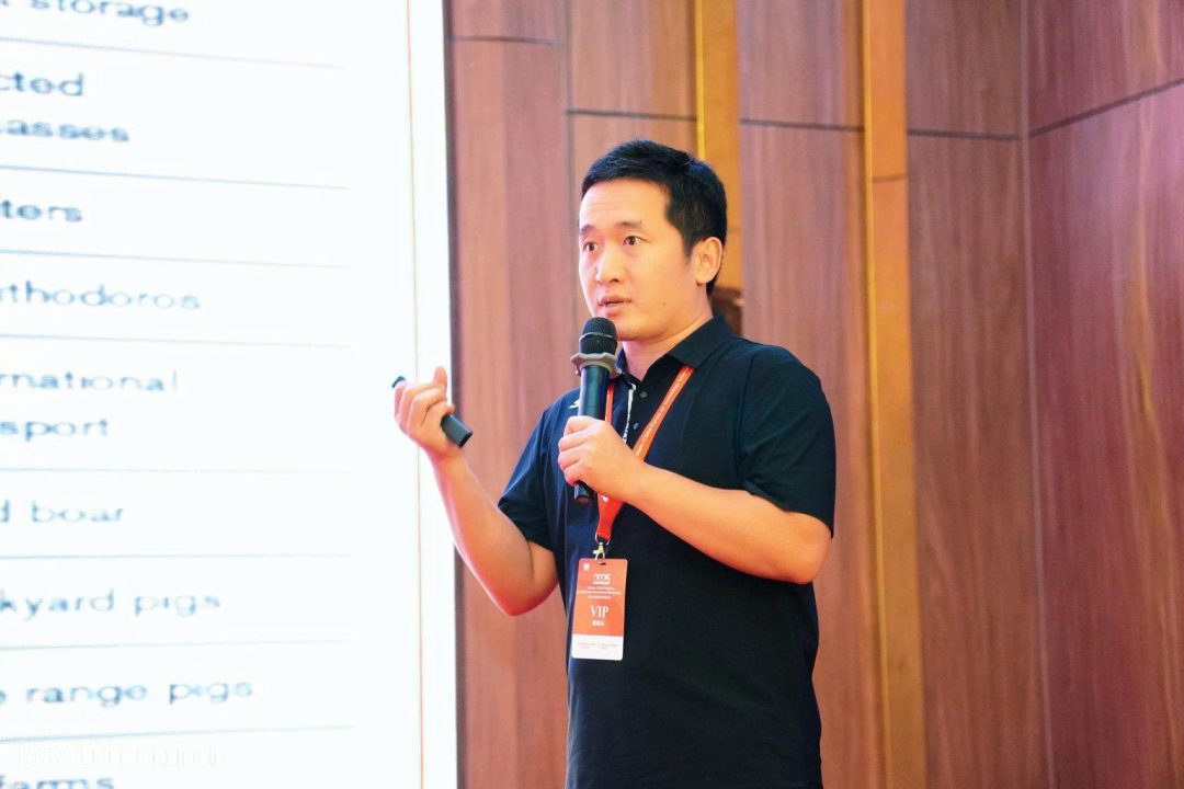 Ông Allan Liu, Giám đốc Kinh doanh và Chuyên gia hoạch định chăn nuôi heo cao cấp trình bày về chủ đề “Từ ứng phó khẩn cấp đến kiểm soát bền vững: Lộ trình kỹ thuật và bài học thực tiễn trong phòng chống dịch tả lợn châu Phi ở Trung Quốc”