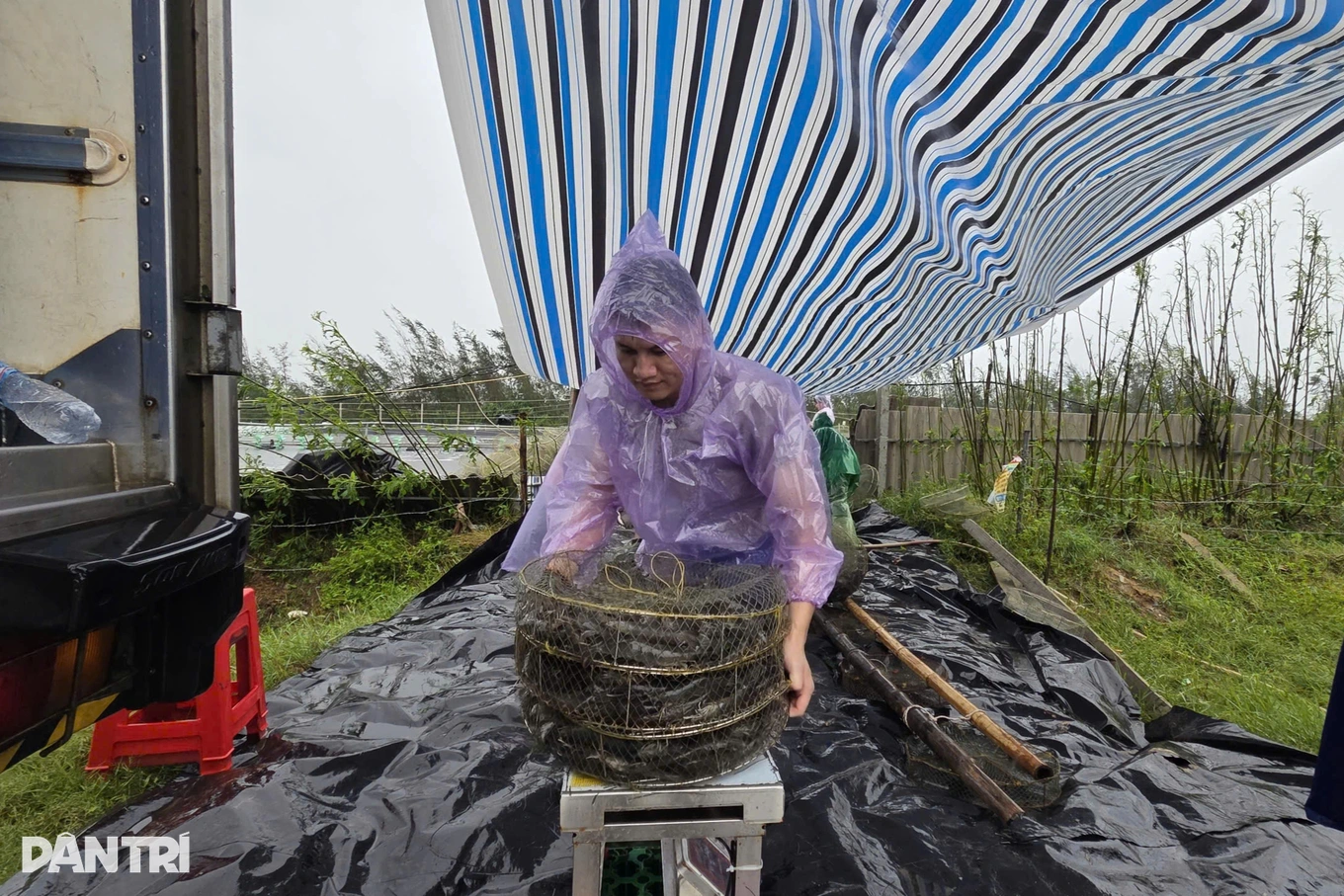 Các thương lái về mua tôm sau bão (Ảnh: Thanh Tùng).