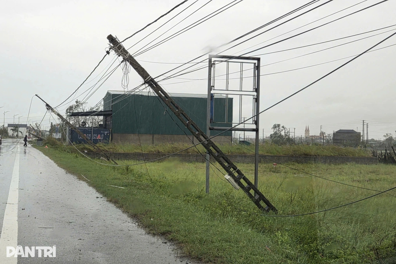 Hàng loạt cột điện ở xã Cổ Đạm bị gió bão quật đổ (Ảnh: Thanh Tùng).