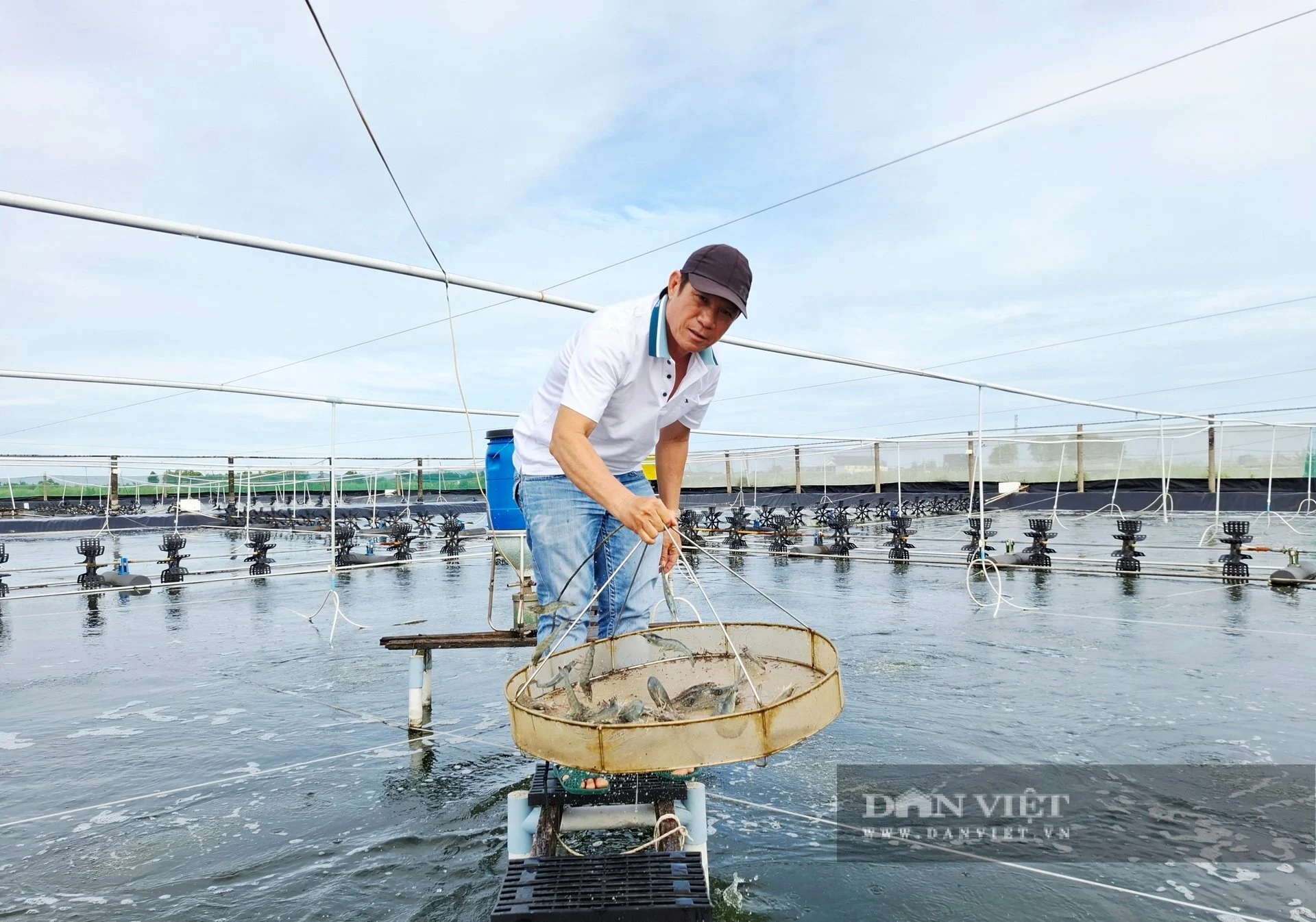 Nông dân Võ Văn Sơn bên đìa tôm xã Phước Dinh, tỉnh Khánh Hòa (Ảnh: Bùi Phụ, Báo Dân Việt)