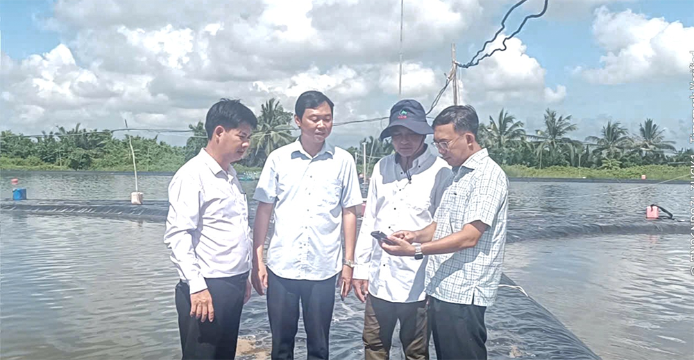 Đoàn khảo sát nuôi tôm nước lợ ngành nông nghiệp và môi trường TP Cần Thơ đến khảo sát mô hình nuôi tôm nước lợ của hộ dân tại xã Lai Hòa, TP Cần Thơ.