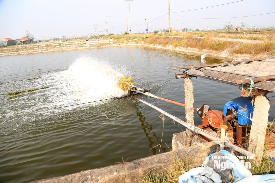 Nuôi tôm vụ Đông đòi hỏi người nuôi có nhiều kinh nghiệm trong khâu chăm sóc, đặc biệt là tăng thời gian vận hành quạt nước nhằm bảo đảm hàm lượng ô xy hòa tan trong ao nuôi. Ảnh: Xuân Hoàng/Báo Nghệ An