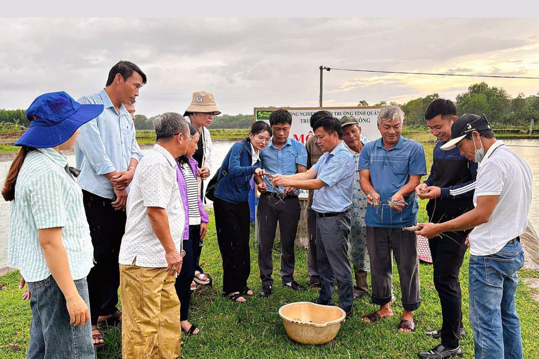 Năm 2025, Trung tâm Khuyến nông Quảng Trị hỗ trợ gia đình ông Hồ Văn Thọ tại thôn An Bình, xã Hiếu Giang 50% chi phí tôm giống, thức ăn công nghiệp và men vi sinh nuôi thử nghiệm 0,2 ha tôm càng xanh.