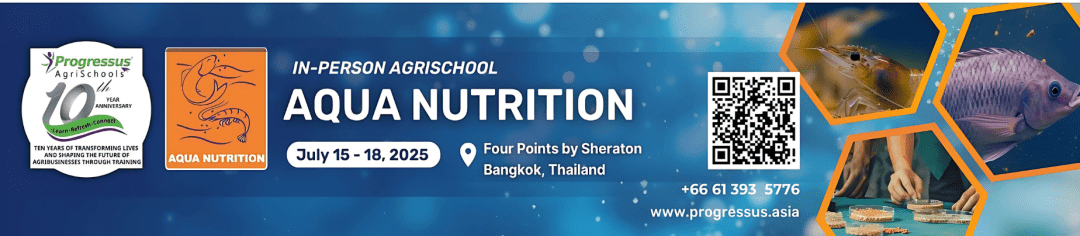 Khóa đào tạo trực tiếp “Progressus In-person Aquaculture Nutrition Agrischool” sẽ diễn ra trong bốn ngày, từ ngày 15 đền 18 tháng 7 năm 2025 tại Bangkok, Thái Lan. Đây là cơ hội lý tưởng dành cho các chuyên gia trong ngành thức ăn chăn nuôi tại khu vực châu Á muốn nâng cao kiến thức nền tảng về dinh dưỡng thủy sản. Khóa học được dẫn dắt bởi ba giảng viên có trình độ chuyên môn cao và giàu kinh nghiệm thực tiễn trong lĩnh vực này.