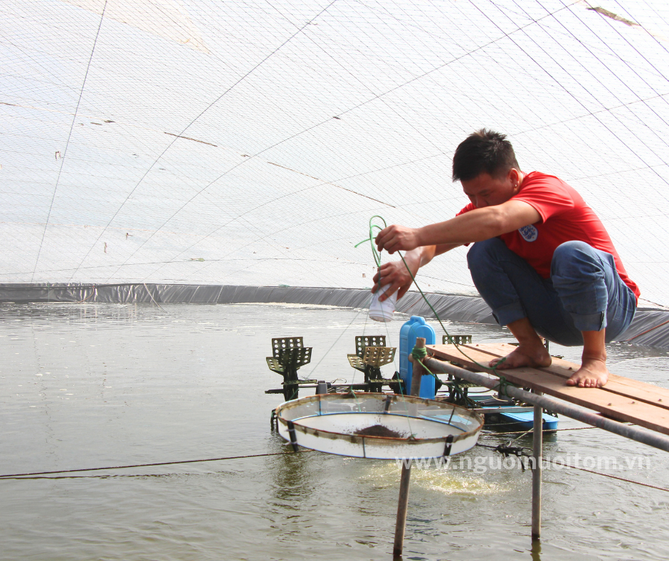 – Định thời gian: cho ăn đúng giờ, tạo thói quen ổn định cho đàn tôm.