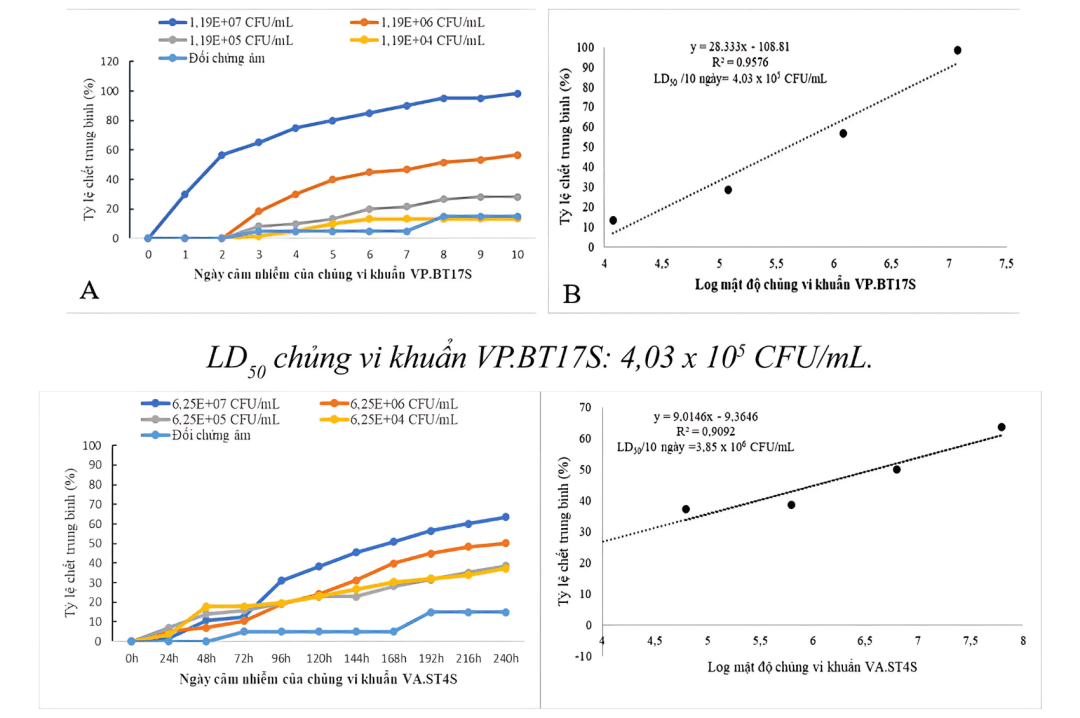 LD50 của chủng vi khuẩn VA.ST4S: 3,85 x 106 CFU/mL.