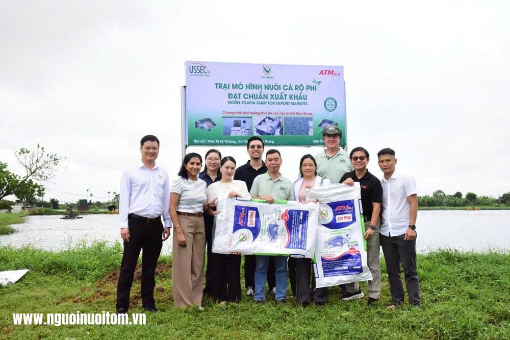 Cùng ngày, đoàn công tác đã đến thăm mô hình trang trại nuôi cá rô phi quy mô 7 ha tại huyện Tứ Kỳ, thành phố Hải Phòng, một trong những điểm sáng trong chuỗi sản xuất thủy sản theo hướng xuất khẩu. Trang trại hiện sử dụng 100% thức ăn thủy sản do Viet Nhat Group cung cấp, với nguồn nguyên liệu được chứng nhận Đậu nành bền vững từ USSEC. Việc áp dụng nguồn thức ăn đạt tiêu chuẩn quốc tế không chỉ giúp nâng cao chất lượng cá rô phi, mà còn đáp ứng các yêu cầu khắt khe từ thị trường xuất khẩu, góp phần gia tăng giá trị cho toàn ngành.